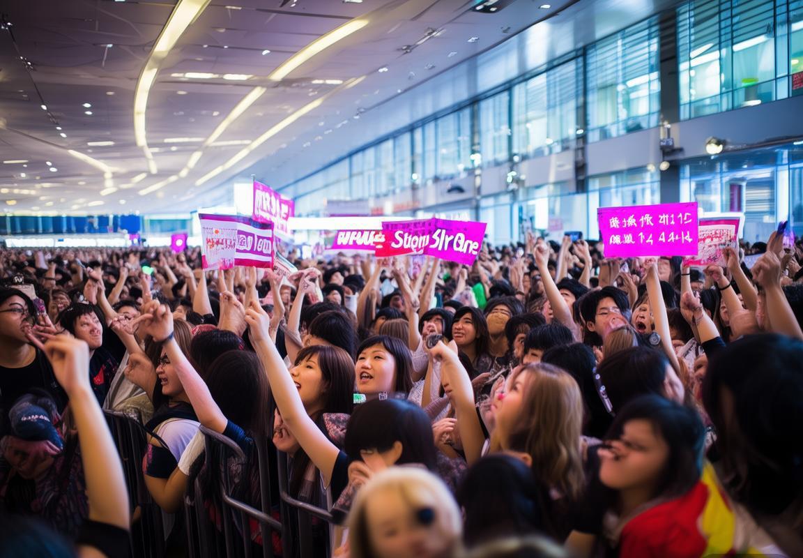 粉丝们高举灯牌和横幅,将接机口围得水泄不通。尖叫声此起彼伏,人群不断向前拥挤。安保人员手拉手组成人墙,仍被热情的人潮冲开缺口。有粉丝为抢占前排位置互相推搡,数人险些摔倒。机场广播反复提醒保持秩序,但收效甚微。部分区域护栏被挤倒,地上散落着应援物品。现场手机信号一度中断,多名旅客被迫改道通行。